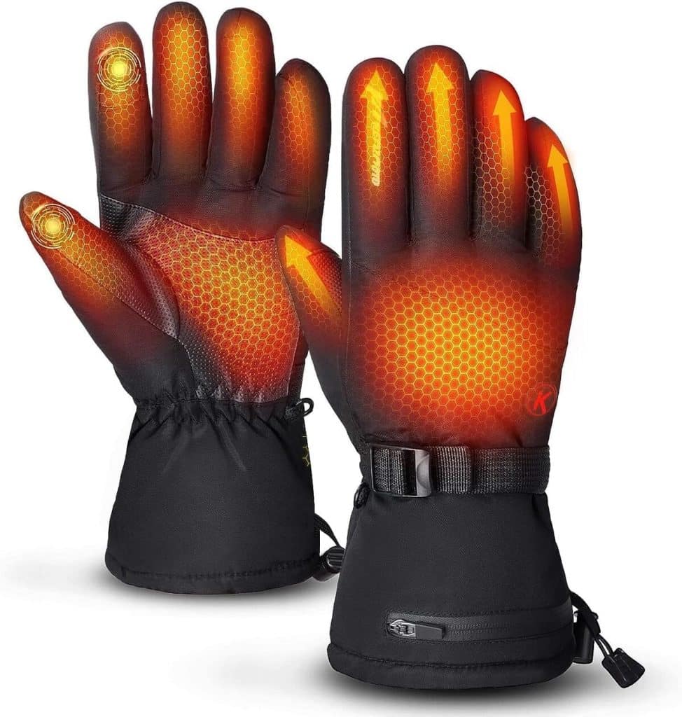 SVPRO Gants chauffants, 5 V 6000 mAh, rechargeables, pour homme et femme, gants chauffants électriques imperméables et coupe-vent pour le ski, la chasse, la moto, le travail en plein airGants chauffants rechargeables : les gants chauffants sont alimentés par une paire de batteries rechargeables de 5 V 6000 mAh, fournissent un chauffage rapide en quelques secondes et maintiennent la chaleur pendant de longues périodes Zone de chauffage couvrant tous les cinq doigts : Des éléments chauffants avancés couvrent chaque doigt - y compris le bout des doigts - et l’ensemble du dos de la main - assurant une distribution de chaleur complète et confortable dans des conditions froides. Pour une répartition complète et confortable de la chaleur par temps froid. Chauffage intelligent à 3 niveaux : Changement simple entre trois réglages de température avec un seul bouton : élevé (65°C-70°C), moyen (55°C-60°C) et faible (43°C-48°C). Chaque mode offre une durée de vie différente de 2-2,5, 3-3,5 et 4-4,5 heures, permettant ainsi à ces gants de s'adapter à différentes conditions météorologiques et activités. Design tactile et pratique : Écran tactile haute sensibilité - compatible avec le pouce et l'index permettant l'utilisation d'appareils électroniques sans retirer les gants. Les boucles de poignet ajustables et les bandes élastiques augmentent la flexibilité et bloquent le vent et le froid. Étanches et coupe-vent : Les gants de ski chauffants pour hommes ont une couche imperméable intégrée et une face extérieure robuste pour garder les mains au sec et au chaud en cas de pluie et de neige. La doublure douce à l'intérieur retient efficacement la chaleur et donne à votre peau une douceur confortable. La paume des gants est fabriquée en matériau antidérapant pour offrir une prise plus forte. Parfait pour les travailleurs en plein air.